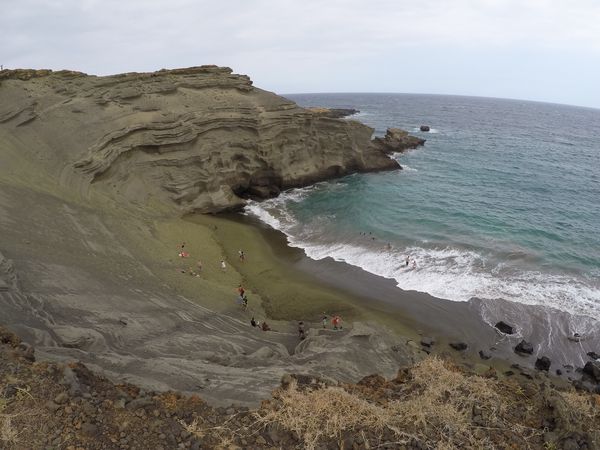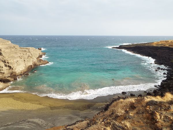 Papakolea is beautiful; the unique colour comes from olivine, a mineral common in Hawaiian lava. It’s a bit cloudy when we arrive, and the sand looks more brown than green. When we’re about to leave, the sun comes out and unveils just how beautiful (and green) this place really is.