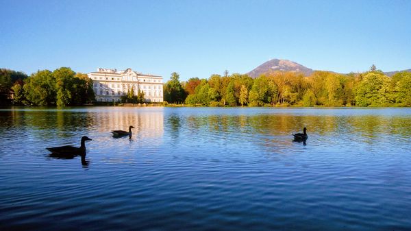 Soon after, Leopoldskroner Weiher comes into view. Walking around it, you can catch some views on the Leopoldskron castle, which has been used as the backside of the van Trapp villa in the Sound of Music movie.