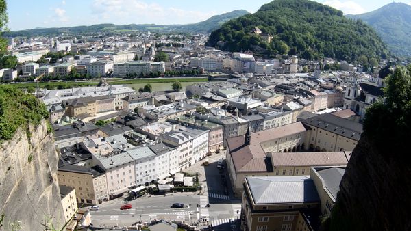 Follow the Salzach back towards the city centre and cross the river at Mozartsteg, a pedestrian bridge named after Salzburg’s most famous citizen. We stroll through some of the narrow alleyways of old Salzburg (Pfeifergasse, Krotachgasse, Kaigasse) again passing some lovely food places like the Zirkelwirt. Right after a Billa supermarket, we walk up towards Nonnberg Priory to get a view down on the district of Nonntal. You can see one of Salzburg’s newest university buildings, their rooftop cafe only a couple of minutes away. If you want you can finish your walk there and take one of the many buses back to the train station from the stop Salzburg Justizgebäude (note, that there are several bus stops with that name scattered some 100 meters apart). For everyone with more time, our journey continues.