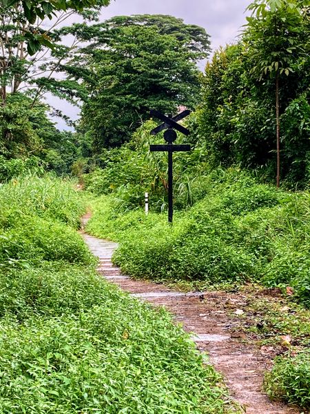 It’s been raining over the last couple of days, and we soon find ourselves navigating puddles of mud as we trod through the most untouched part of the corridor from Kranji towards Bukit Timah. It begins to pour again, and we just so manage to find shelter under an old bridge being hilariously underequipped with just some tiny umbrellas from 7-11. We kill time for about an hour waiting out the rain. Once it clears up, we pose for a few photos and stop for breakfast at Rail Mall.